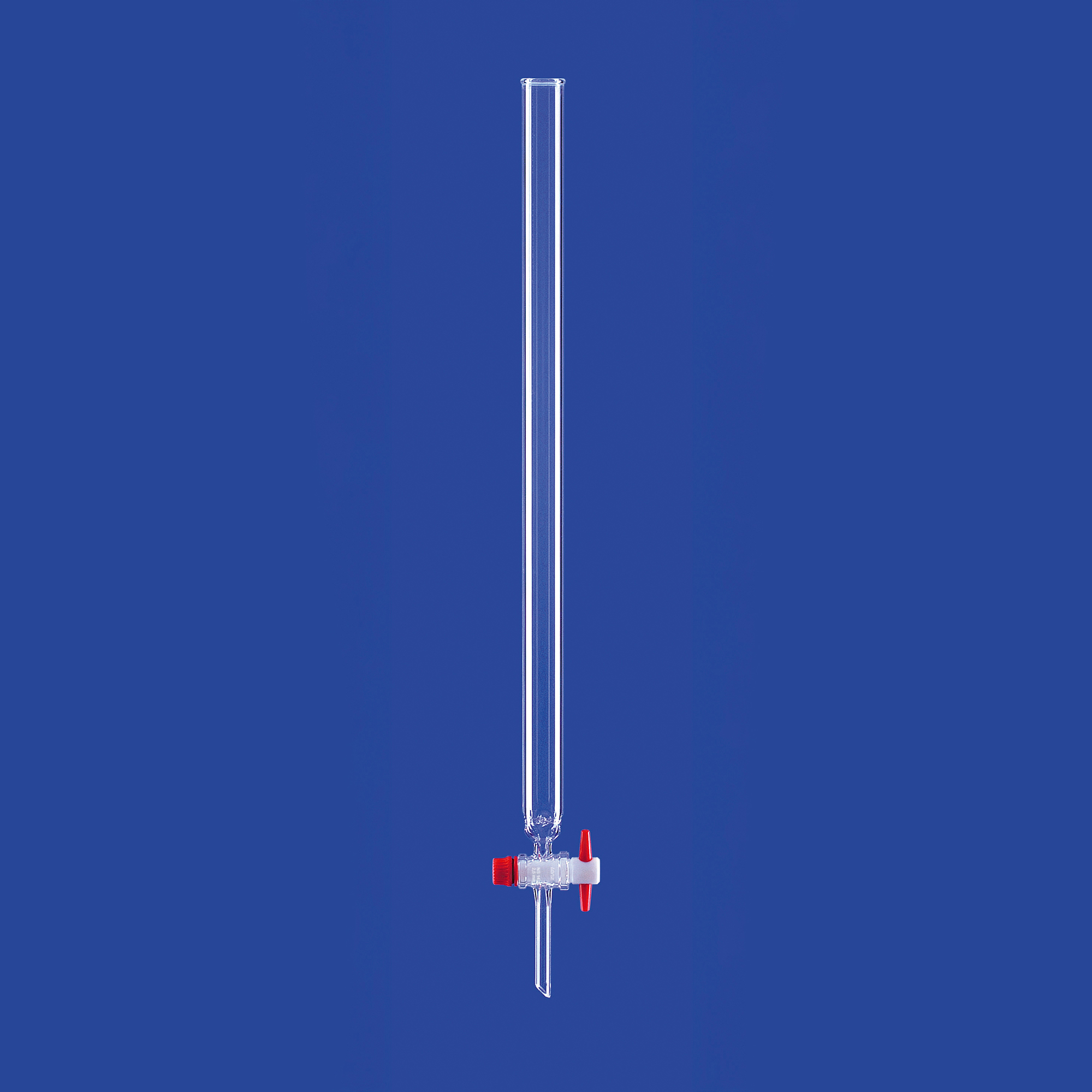 Einfache Chromatographie-Säulen mit Einstichen über dem Hahn zum Auflegen eines Wattebauschs, mit Bördelrand, mit PTFE-Küken und Hahnsicherung, hergestellt aus DURAN®-Rohr