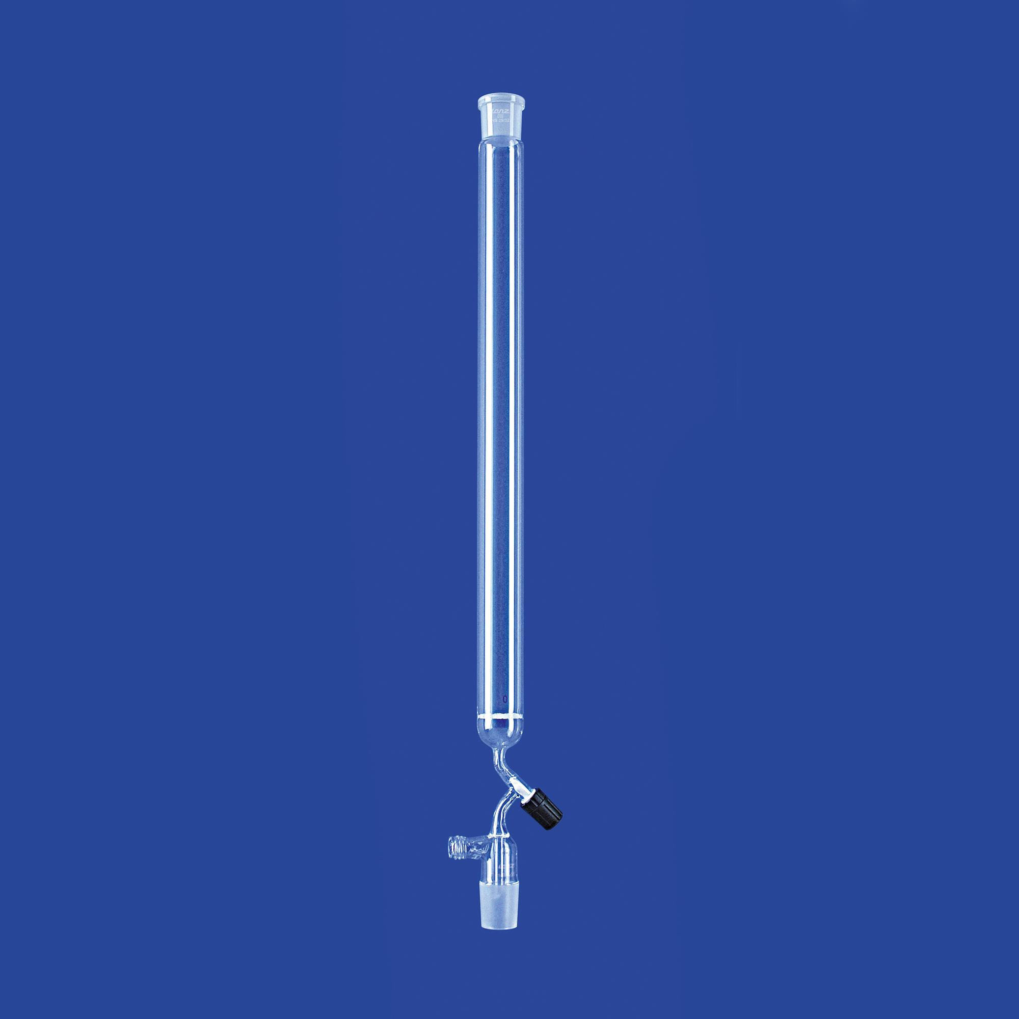 Chromatographie-Säulen mit NS-Hülse und NS-Kern, mit Ventilhahn, mit eingeschmolzener Fritte (Porosität: 0), mit Saugrohr (Gewinde GL 18), hergestellt aus DURAN®-Rohr
