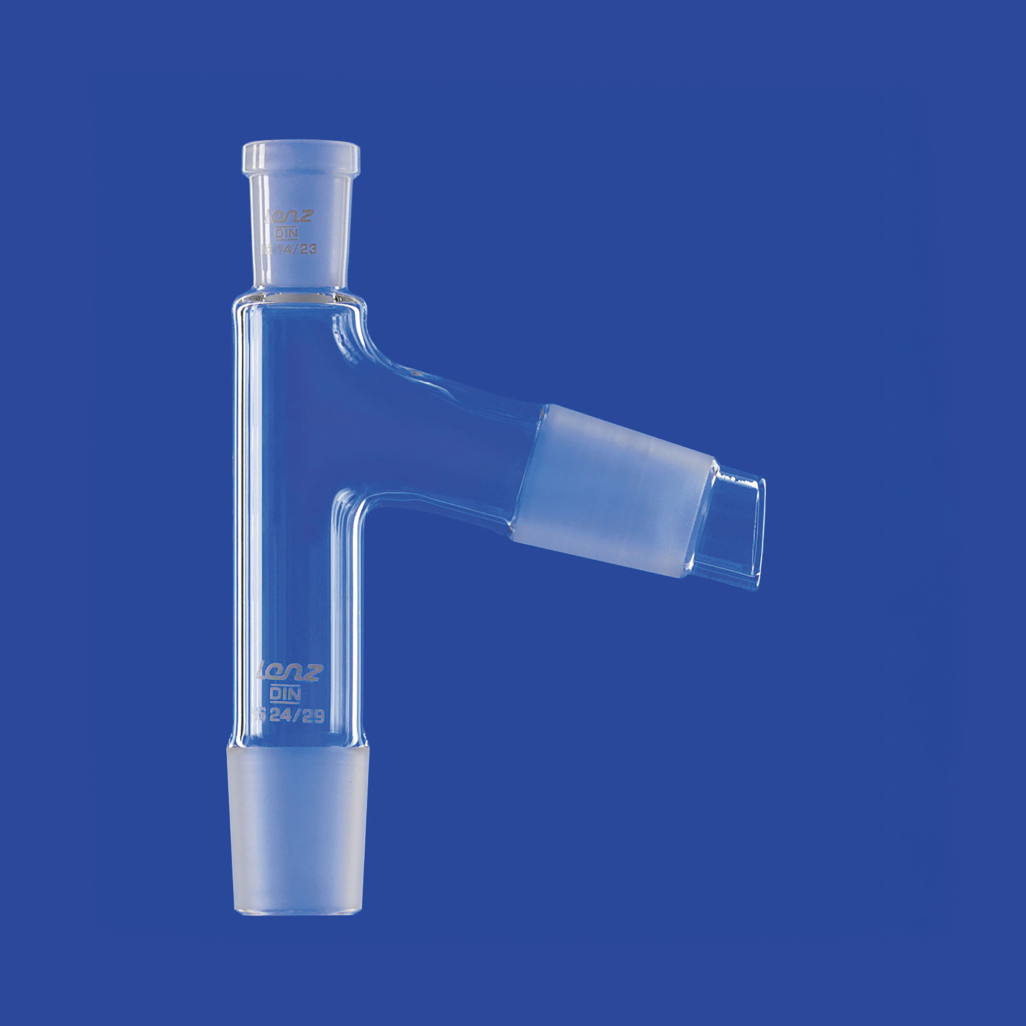 Nach DIN 12594 und in Ergänzung zur Norm, mit einer Hülse NS 14/23 und zwei NS-Kernen (Ablaufwinkel: 75°), für Destillationsthermometer mit einer Einbaulänge von 55 mm, hergestellt aus DURAN®-Rohr