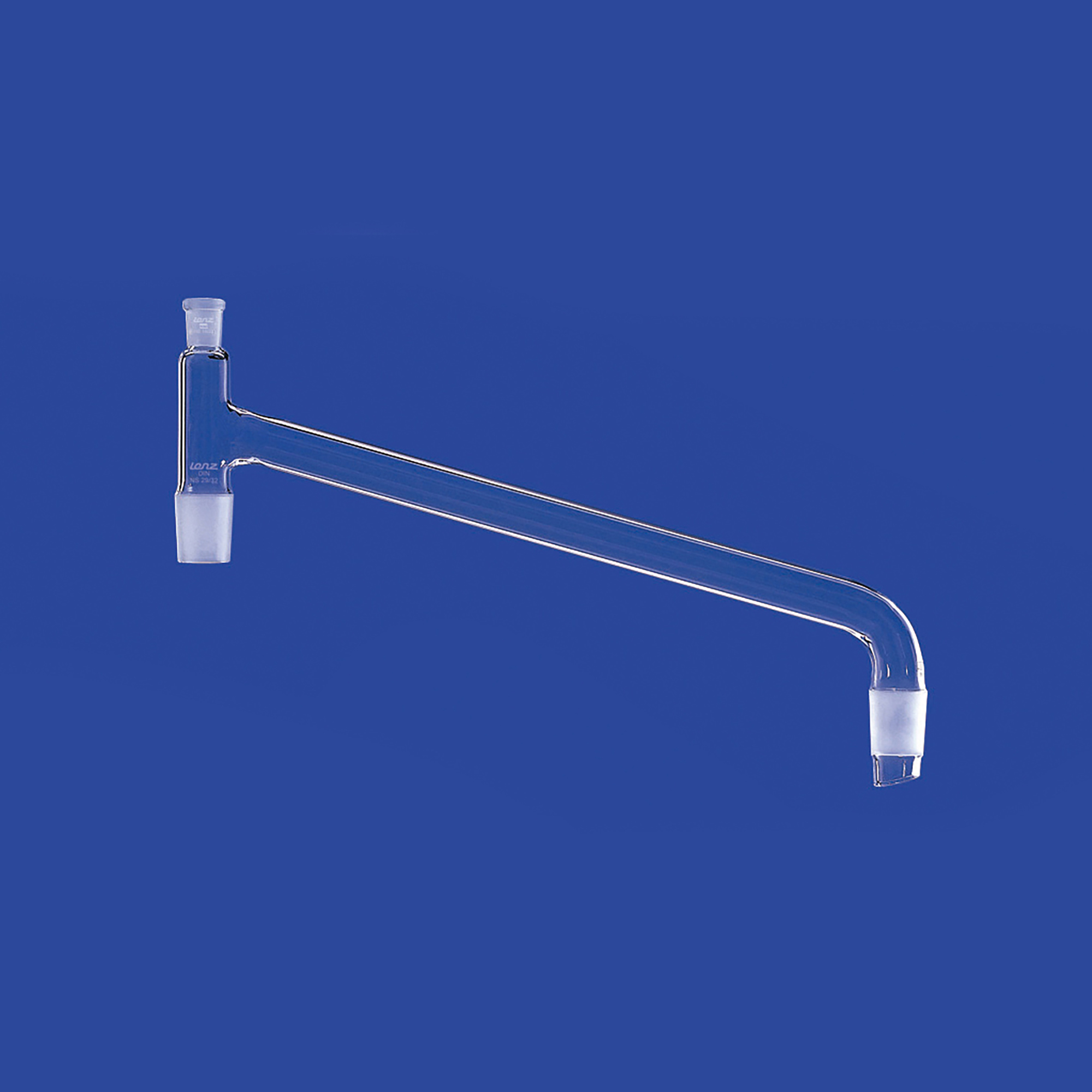 Destillierbrücken ohne Kühler, mit zwei senkrechten NS-Kernen, mit Schliffhülse NS 14/23 für Destillationsthermometer mit einer Einbaulänge von 55 mm, hergestellt aus DURAN®-Rohr