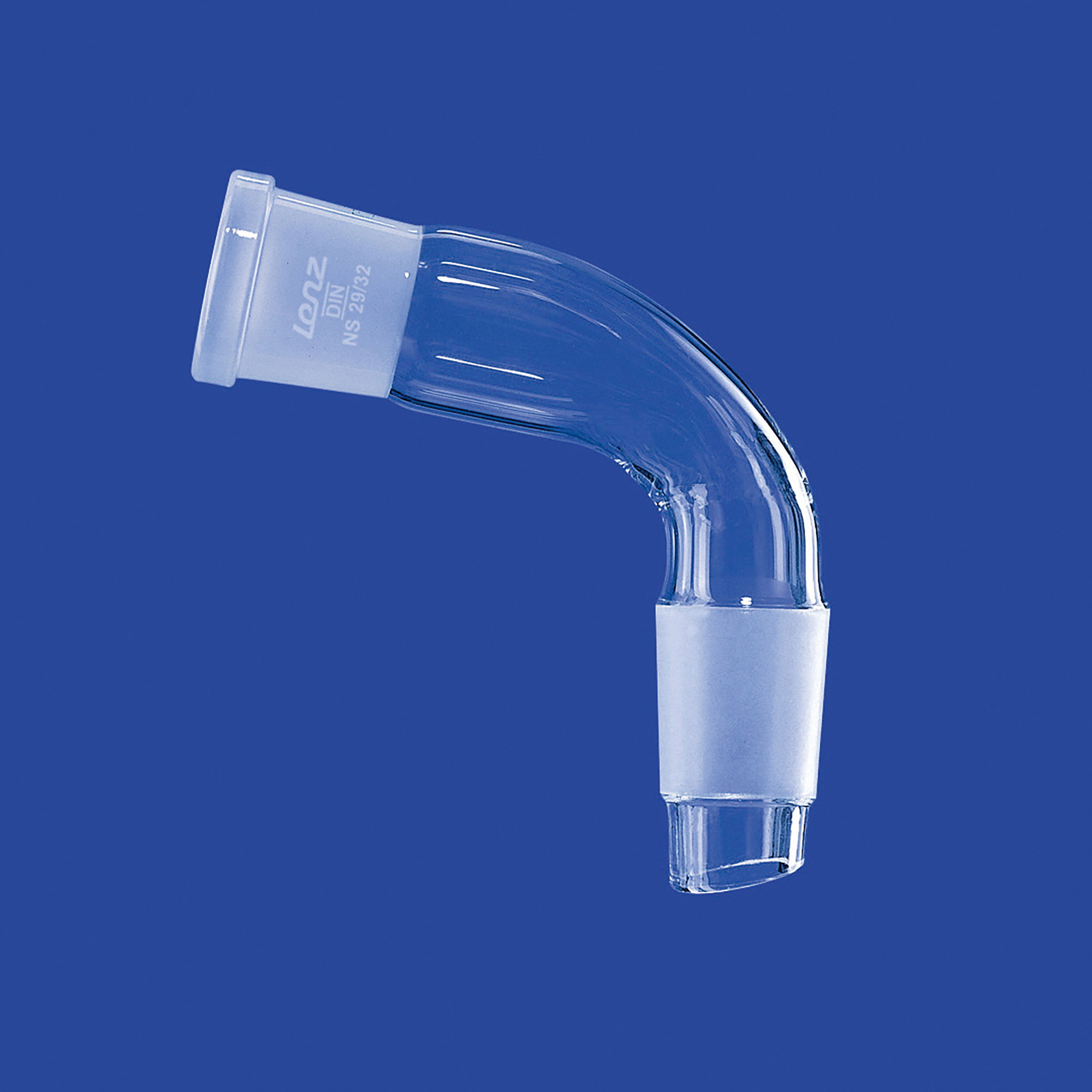 Destilliervorstöße, gebogen (105°), mit NS-Hülse und NS-Kern, mit Abtropfspitze, hergestellt aus DURAN®-Rohr