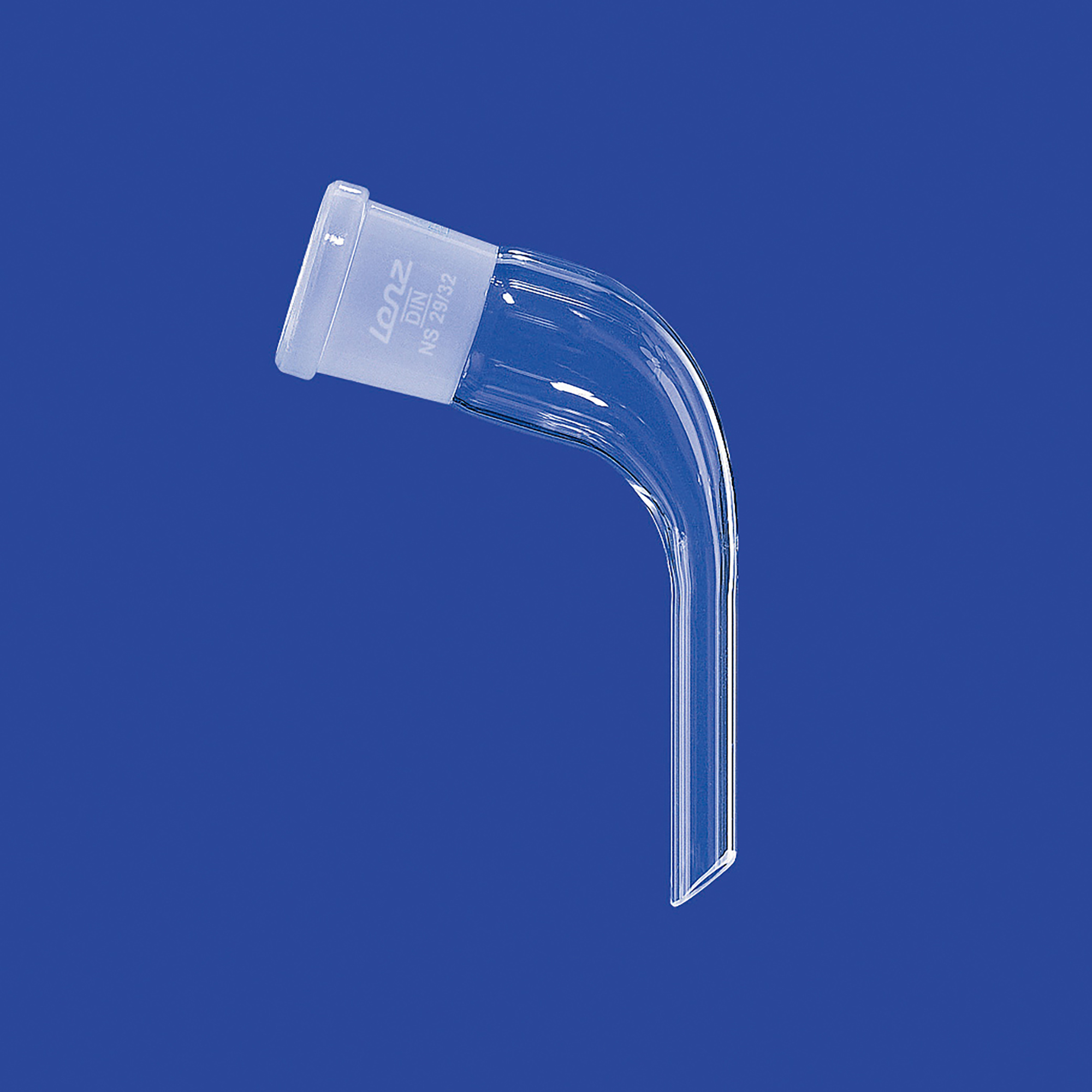 Destilliervorstöße mit kurzem Ablauf, gebogen (Winkel: 105°), mit NS-Hülse, hergestellt aus DURAN®-Rohr