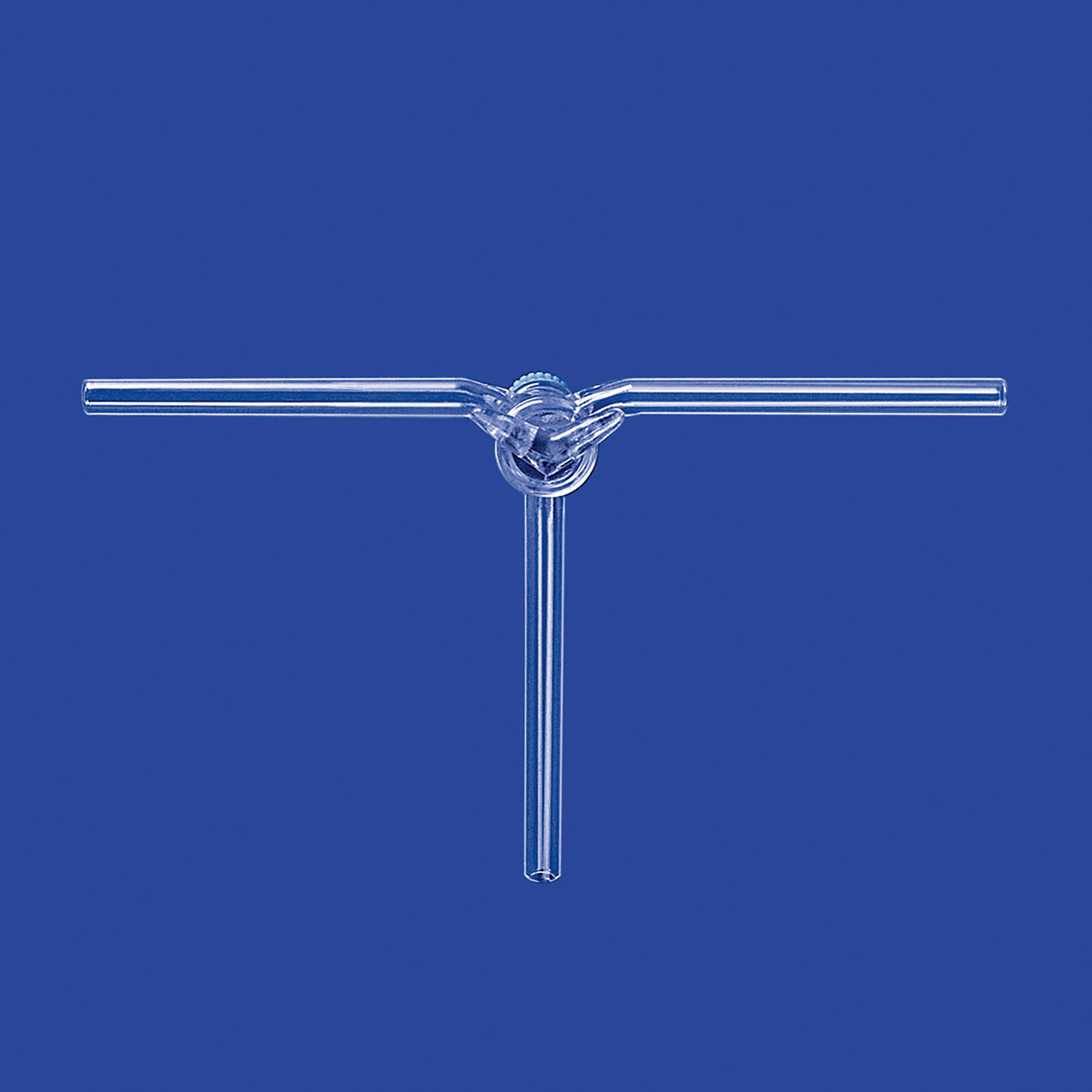 Nach DIN 12563, Winkelbohrung: 120°, mit massivem Glasküken und Gewindehahnsicherung, Material: Borosilikatglas 3.3, Dichtheit nach DIN 12540–1