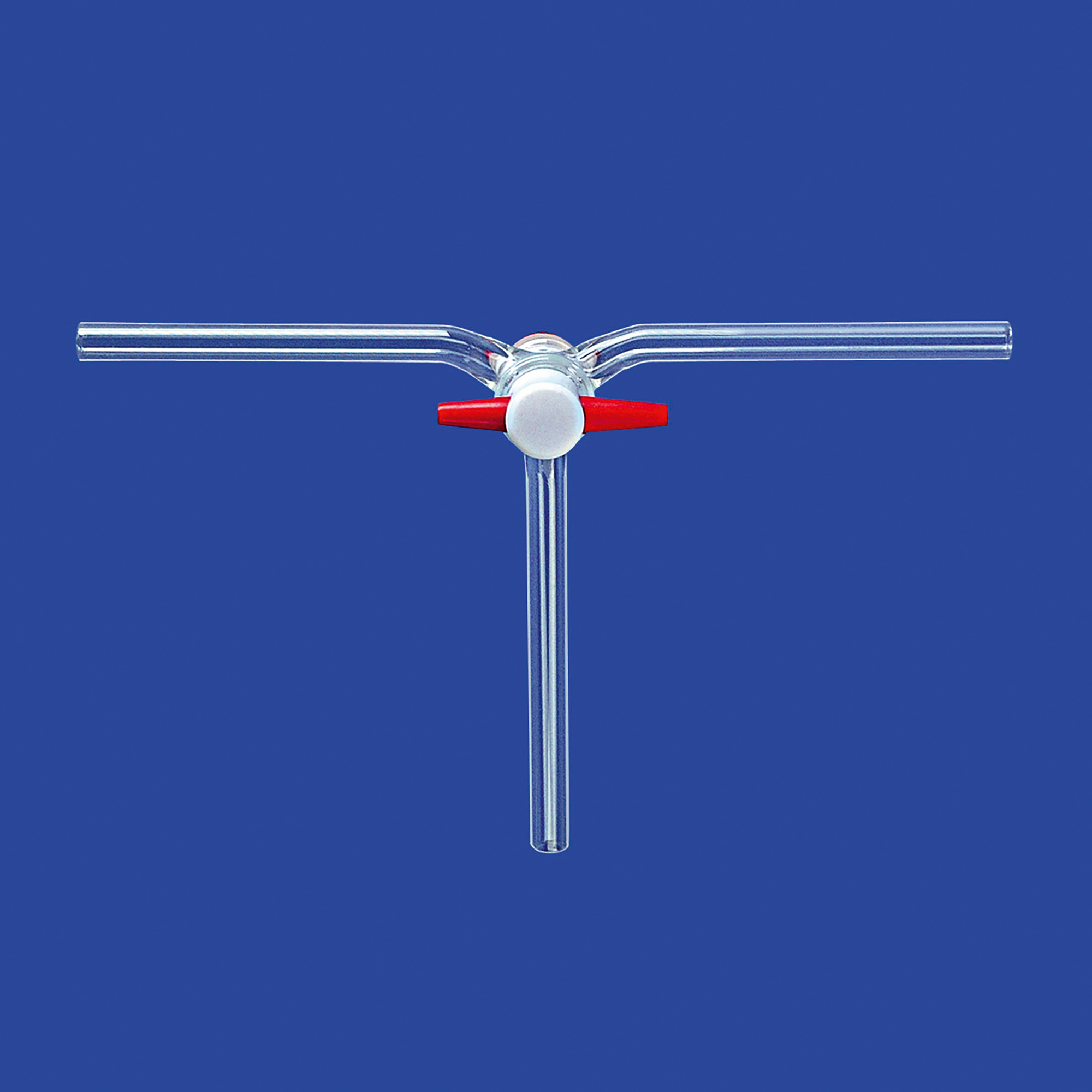 Nach DIN 12563, Winkelbohrung: 120°, mit PTFE-Küken und Gewindehahnsicherung, Material: Borosilikatglas 3.3, Dichtheit nach DIN 12540–1
