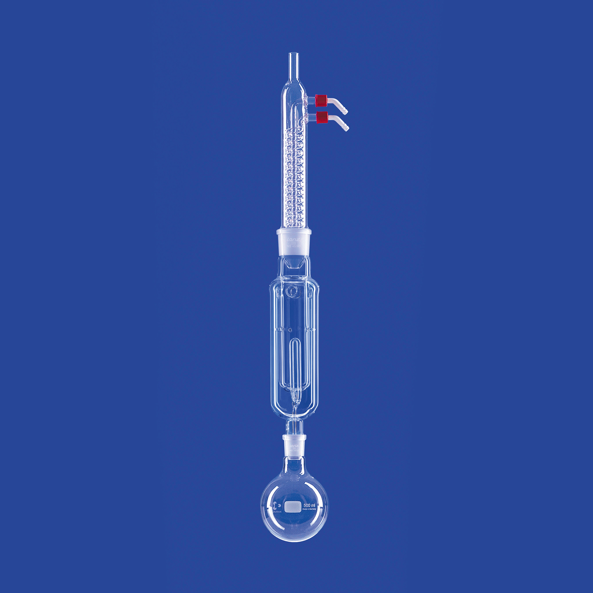 Das Kondensat fließt durch das Extraktionsgut und läuft kontinuierlich in den Kolben zurück, ohne dass eine Unterbrechung der Extraktion eintritt, d.h. das Extraktionsmittel befindet sich im ständigen Kreislauf.