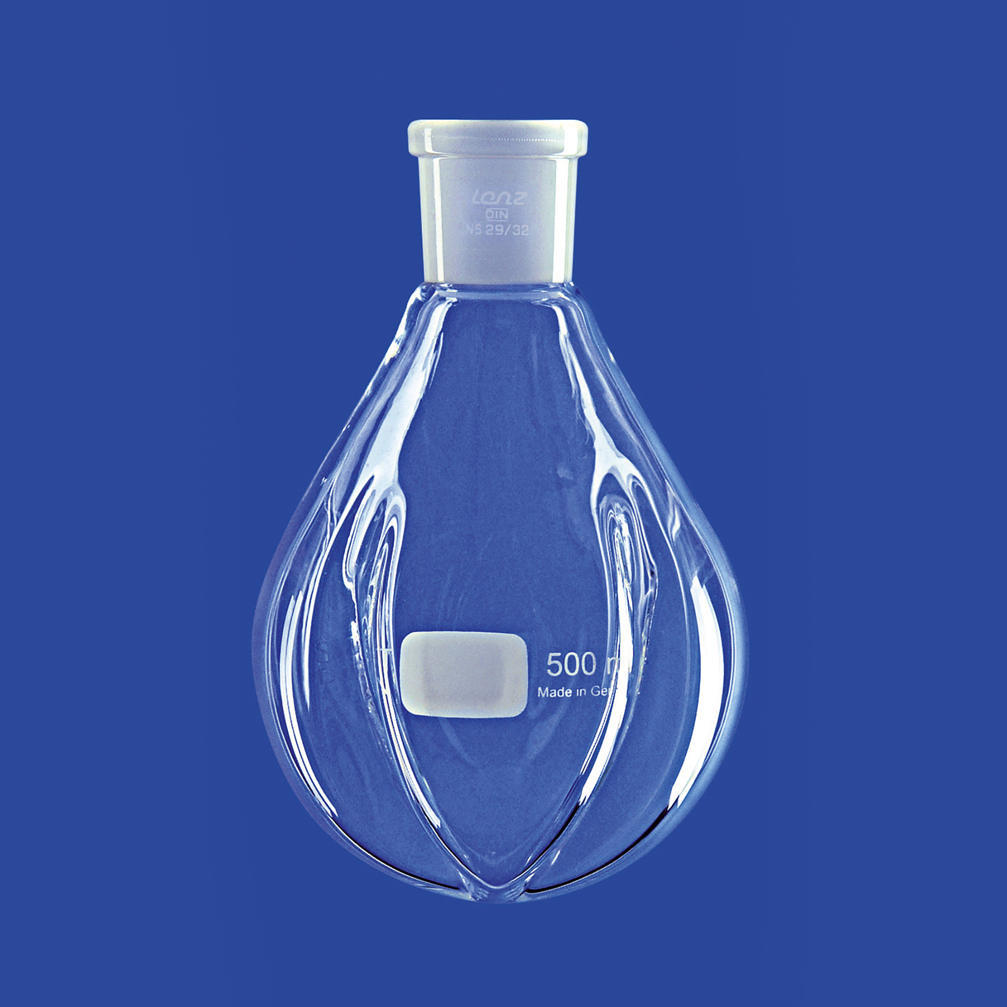 Speziell für Rotationsverdampfer, zum Trocknen pulverförmiger Substanzen, mit zentriertem Normschliff, mit Beschriftungsfeld, Material: DURAN®