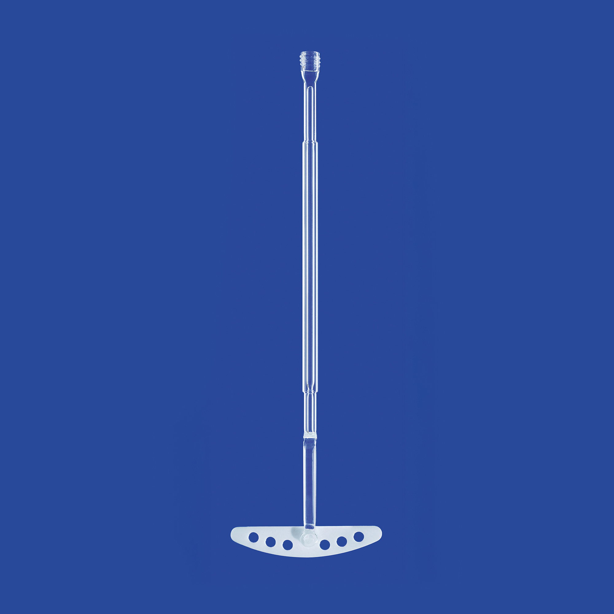 Aus kalibriertem Präzisionsglas,geschliffene und polierte Lauffläche,Wellen‑Ø: 10 mm, Gewindeanschluss: GL 10,mit Druckknopf zum Auswechseln der PTFE-Rührblätter,Rührblatt: PTFE (gelocht),Rührwelle hergestellt aus DURAN®-Rohr