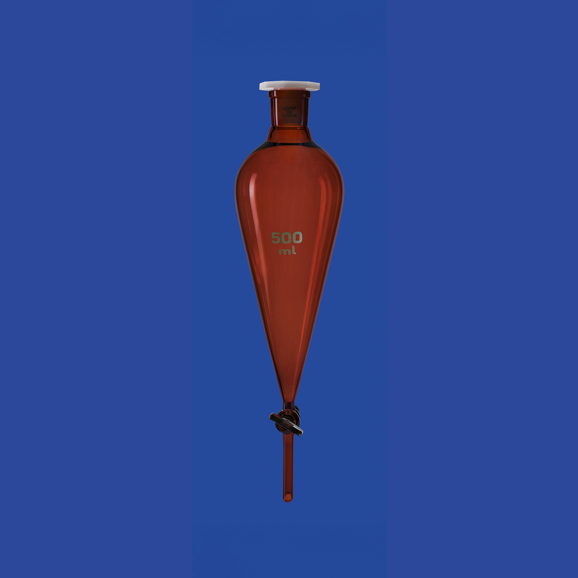 Scheidetrichter nach Squibb, Braun, mit Glasküken, ohne Teilung