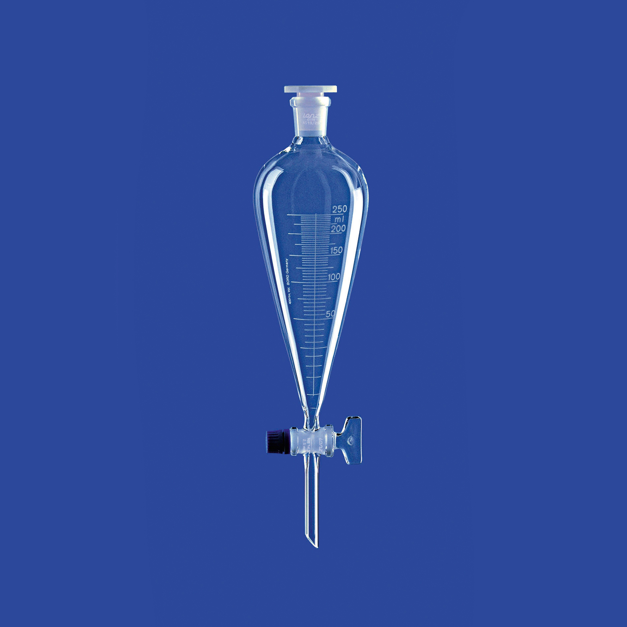 Scheidetrichter nach Squibb, mit Glasküken, mit Teilung