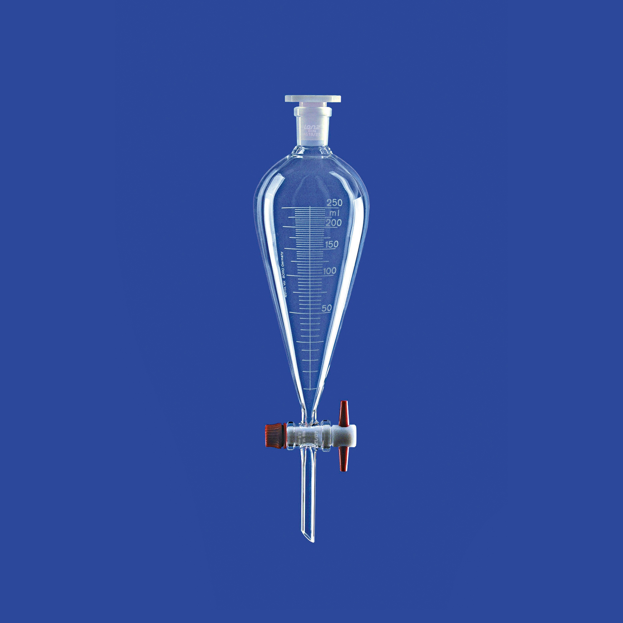 Scheidetrichter nach Squibb, mit PTFE-Küken, mit Teilung