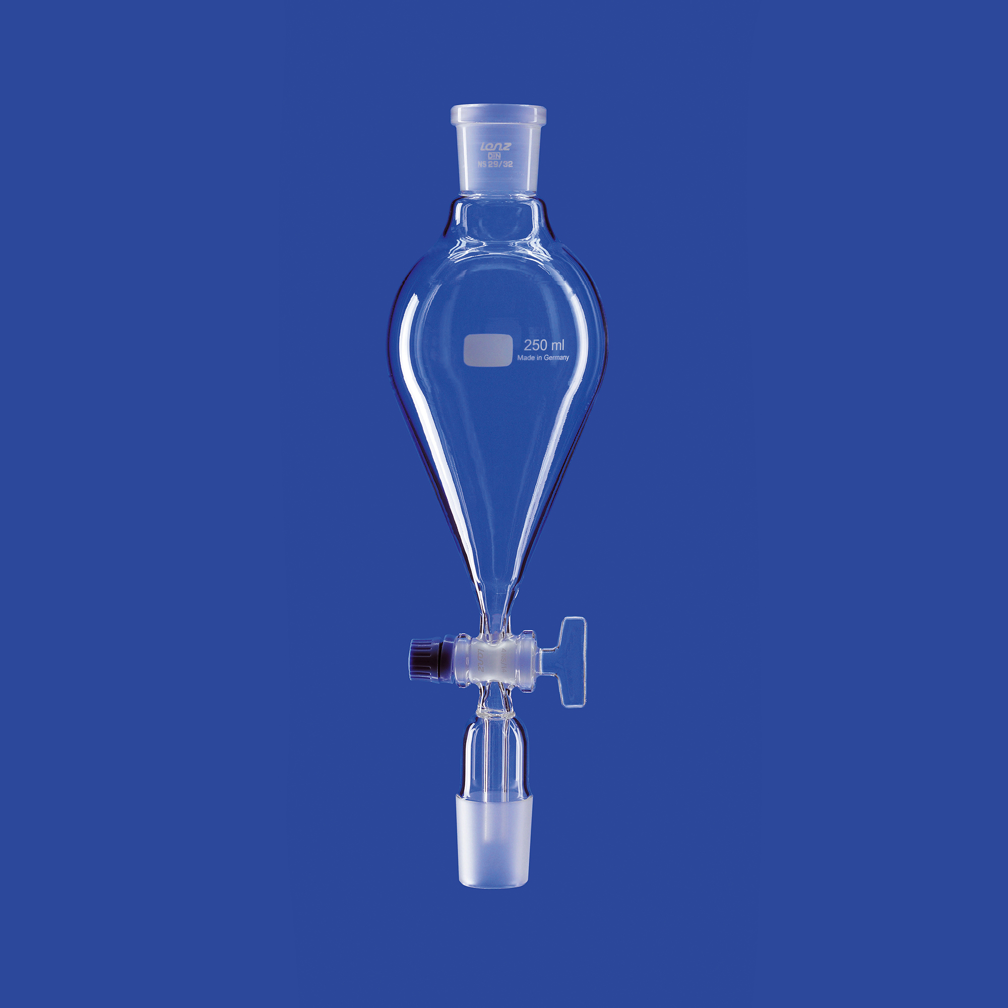 Konische Form mit NS-Hülse und NS-Kern, mit massivem NS-Glasküken, mit Gewindehahnsicherung, mit Beschriftungsfeld, ohne Teilung, Material: Borosilikatglas 3.3