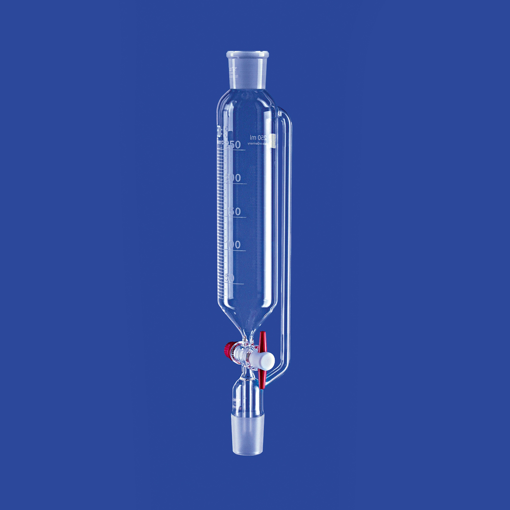 Tropftrichter, zylindrisch, mit PTFE-Küken, mit Druckausgleichsrohr