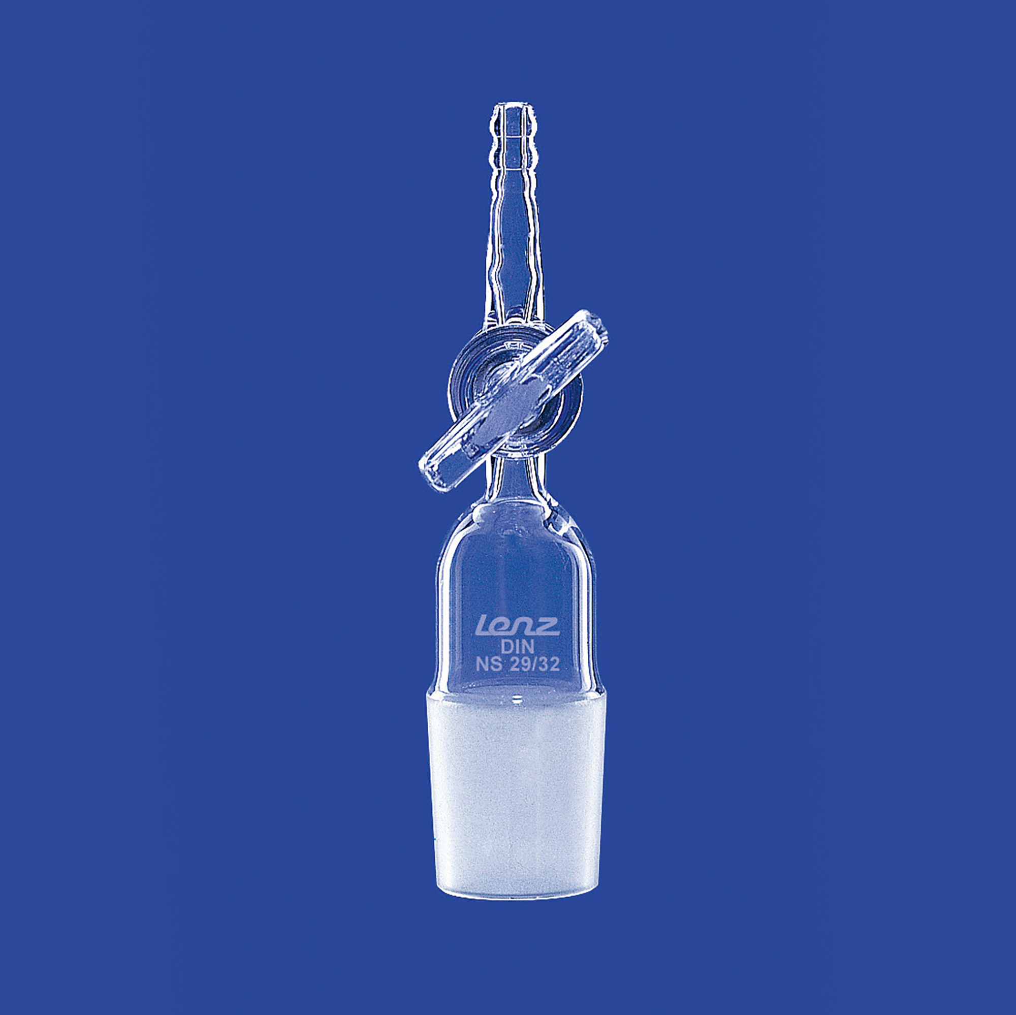 Übergangsstücke mit NS-Kern, gerader Schlaucholive und NS-Hahn mit massivem Glasküken, Bohrung: 2,5 mm, hergestellt aus DURAN®-Rohr
