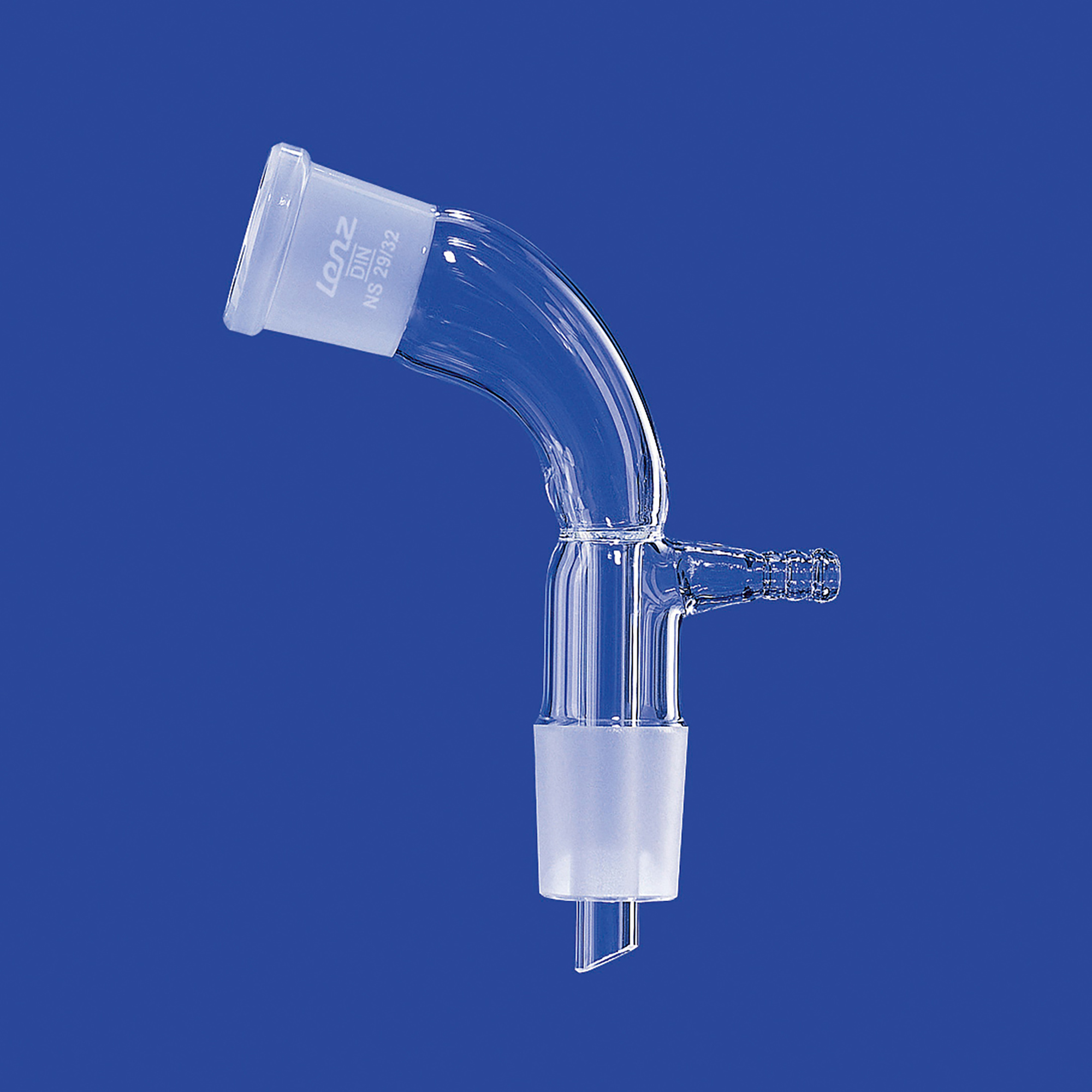Vakuumvorstöße nach DIN 12594, gebogen (Winkel: 105°), mit NS-Hülse und NS-Kern, mit Abtropfspitze, Vakuumanschluss: Olive, hergestellt aus DURAN®-Rohr