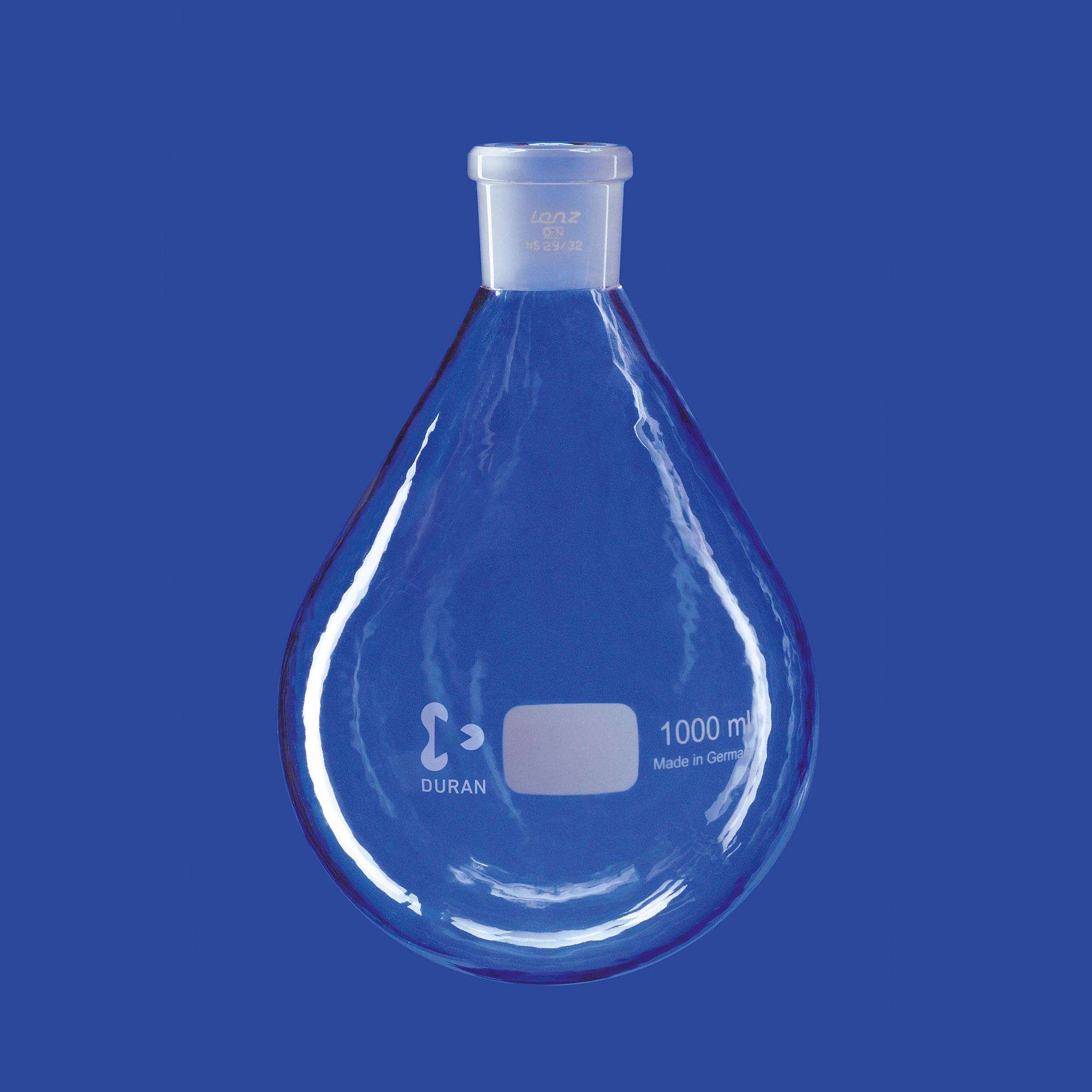 Speziell für Rotationsverdampfer, mit zentriertem Normschliff, birnenförmig, mit Beschriftungsfeld, Material: DURAN®